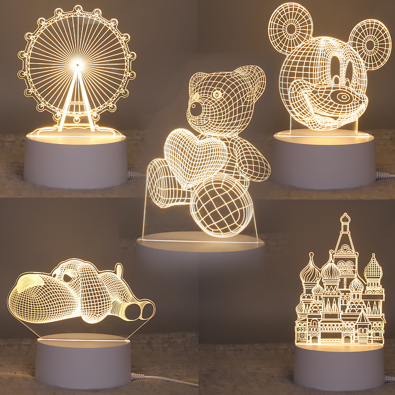 Lampu meja dekoratif akrilik ukuran kecil, lampu malam 3d, pengisian USB, warna-warni, hadiah iklan, suvenir turis