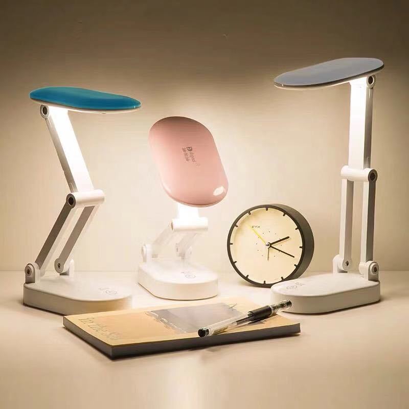 Lampu meja lipat LED portabel, lampu meja kecil tiga warna peredupan tak terbatas, pengisian daya portabel untuk pelajar membaca