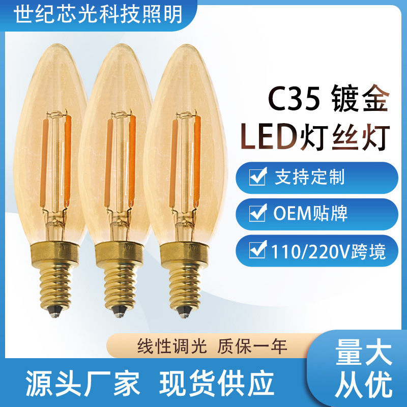 Lampu lilin Retro bohlam LED C35 coklat 2200K, lampu meja peredupan kuning hangat 4W, lampu dinding sumber cahaya lintas batas