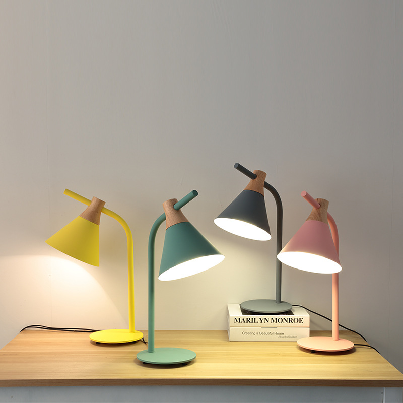 Lampu kamar tidur sederhana Nordic, tempat tidur kreatif & sarapan lampu samping tempat tidur seni belajar Perlindungan Mata belajar macaron lampu meja