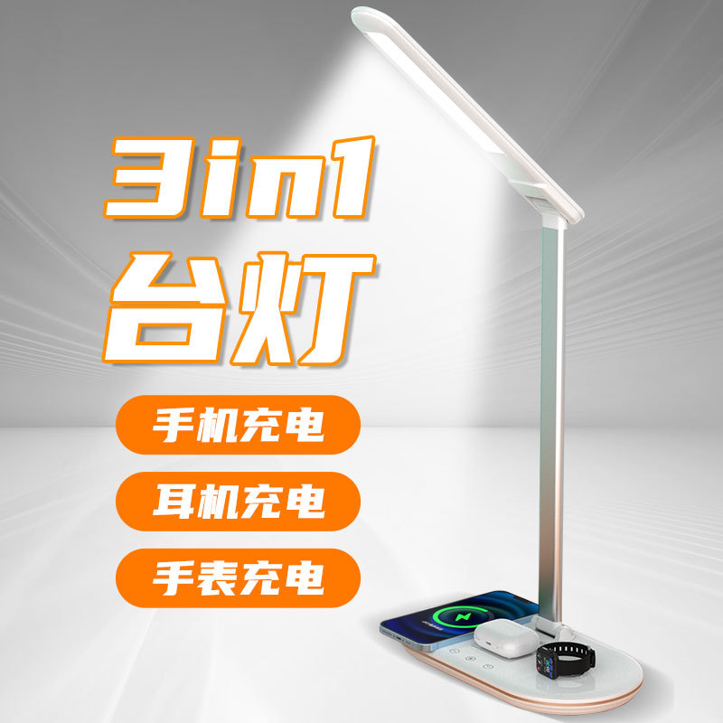 Lampu meja lipat LED tiga dalam satu, lampu meja pelindung mata multifungsi, pengisian daya nirkabel usb, lampu malam samping tempat tidur, rumah tangga