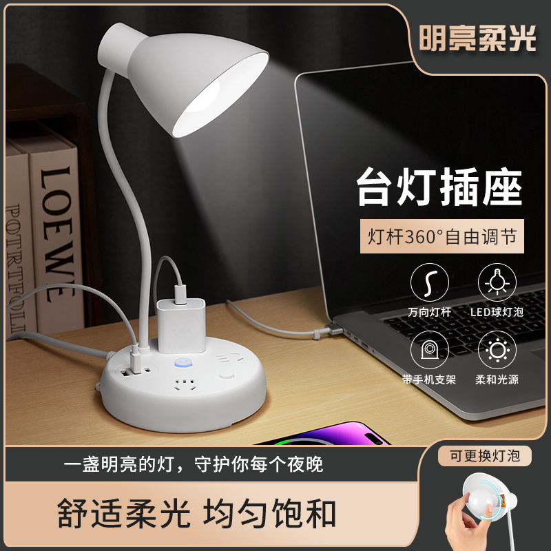 Lampu meja asrama siswa, cahaya lembut pelindung mata lampu meja rumah kamar anak-anak desktop lampu baca dan tulis multifungsi lampu soket lampu meja