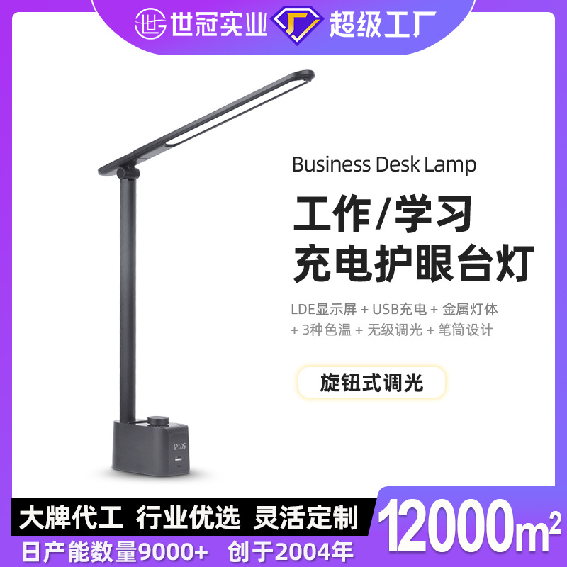 Lampu Meja Pena Multifungsi Lampu Meja Belajar Pelindung Mata Lipat Berputar 360 ° dengan Layar Digital