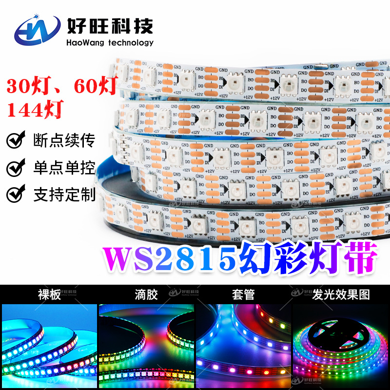WS2815 strip lampu LED transmisi berkelanjutan, strip lampu warna ajaib 12V voltase rendah, setrip cahaya LED titik tunggal, setrip cahaya penuh RGB tahan air