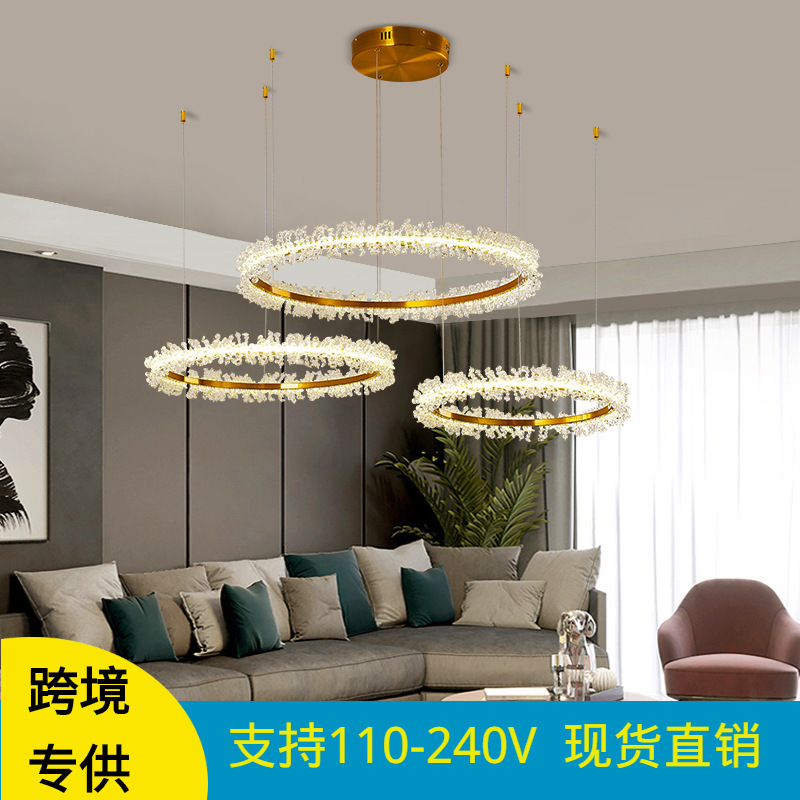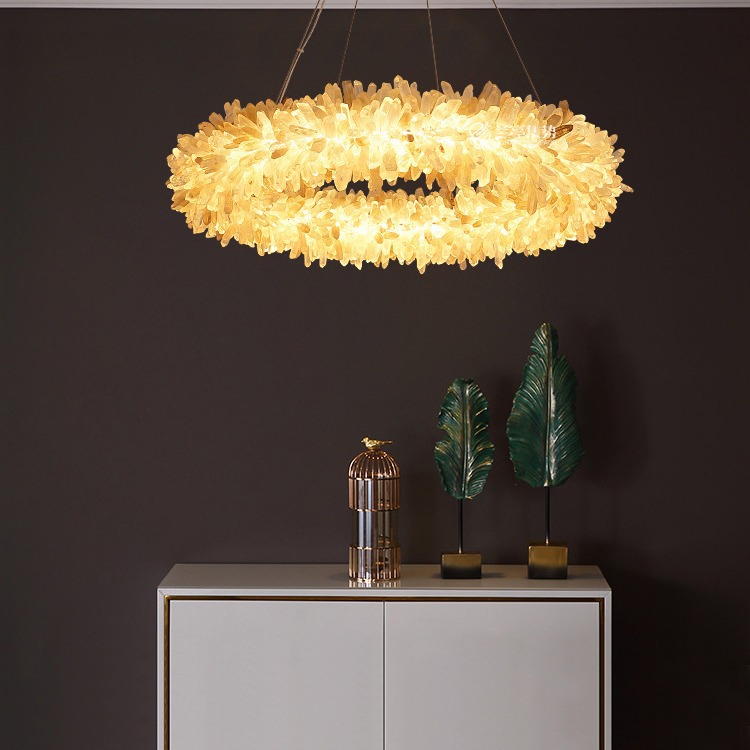 Lampu gantung kristal alami baru bergaya Nordik mewah, terbuat dari batu kristal mentah berbentuk lingkaran untuk ruang tamu dan ruang makan, lampu gantung kreatif untuk kamar tidur dan vila.