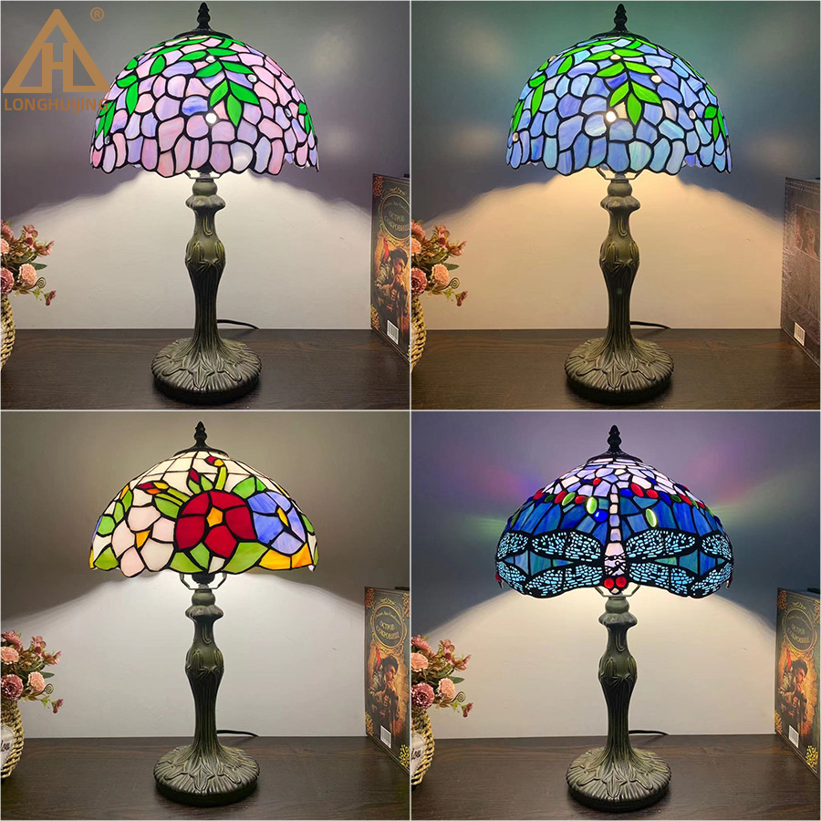 Cross-border lampu meja violet 12 inci baru lampu meja samping tempat tidur belajar pastoral lampu meja pelindung mata lampu dekorasi ruang tamu Tiffany