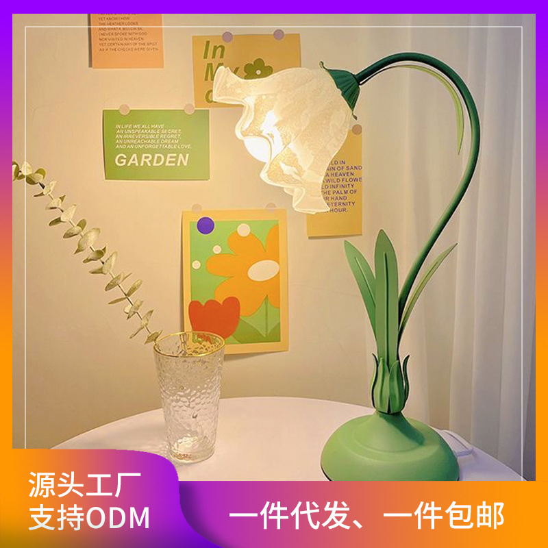 Lampu meja gaya Eropa selebriti internet retro populer bunga buatan pastoral lampu samping tempat tidur lampu utama kamar tidur ins gadis