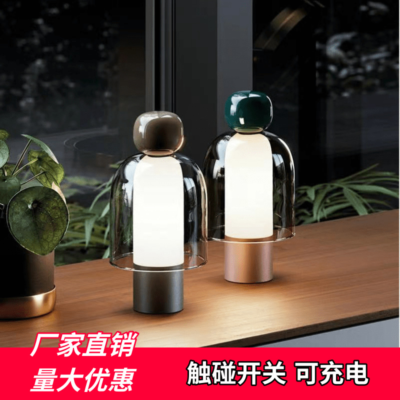 Lampu meja kecil dapat diisi ulang samping tempat tidur Nordic, kepribadian modern sederhana gadis lampu meja kaca kamar tidur Dekorasi desktop lampu malam