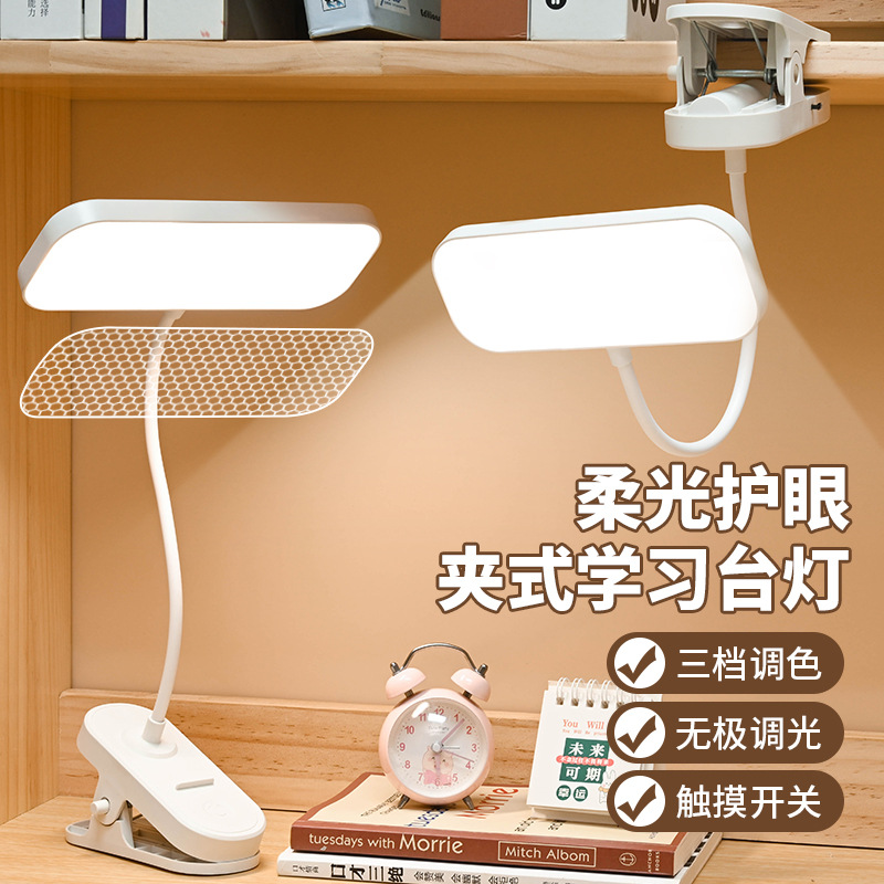 Lampu meja LED dapat diisi ulang Perlindungan Mata anak, lampu klip baca meja perlindungan penglihatan samping tempat tidur asrama siswa