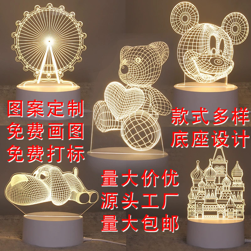 Lampu meja dekoratif akrilik ukuran kecil, lampu malam 3d, pengisian USB, warna-warni, hadiah iklan, suvenir turis