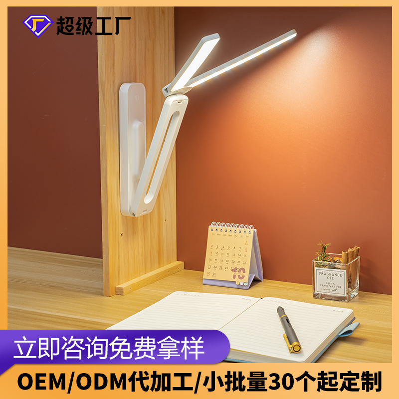 Lampu meja lipat multifungsi, lampu samping tempat tidur LED asrama siswa meja rumah portabel untuk belajar perlindungan mata