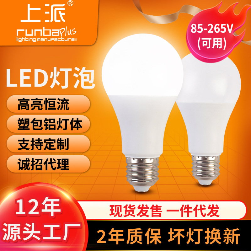 Shangpai bohlam lampu led bola 15W sekrup tekanan lebar sorot rumah tangga antikilat hemat energi led grosir lampu hemat energi
