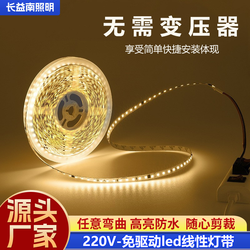 Lampu LED strip 220V bebas-berkendara, 2835 tegangan tinggi 120 paket lampu pita perekat 10cm potongan potongan lampu setrip