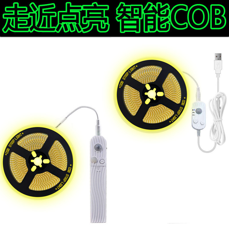 Lampu kotak baterai COB pintar dengan 5VUSB, lampu LED peredupan pengaturan waktu induksi tubuh manusia dengan lampu untuk menyala