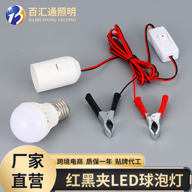 Lampu bohlam DC voltase rendah klem mobil baterai DC 12V dengan lampu saklar super terang lampu pasar malam lampu pencahayaan toko