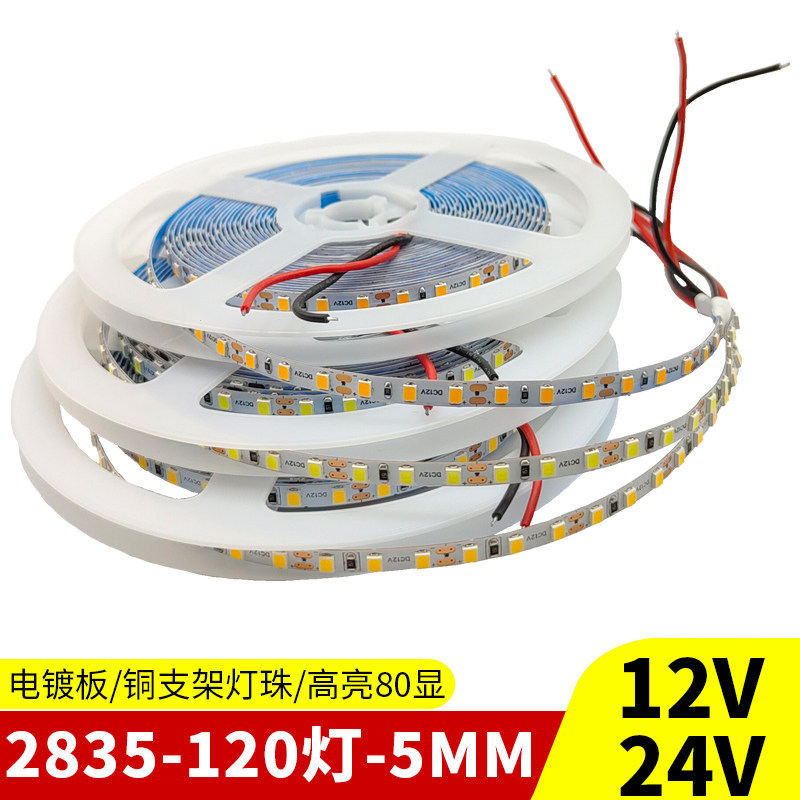 Lampu Tempel Tegangan Rendah Terang 24V Lampu Strip Lampu LED untuk Pencahayaan Ruang Tamu Lemari Langit-Langit dalam Ruangan yang Dapat Dipotong 2835cob
