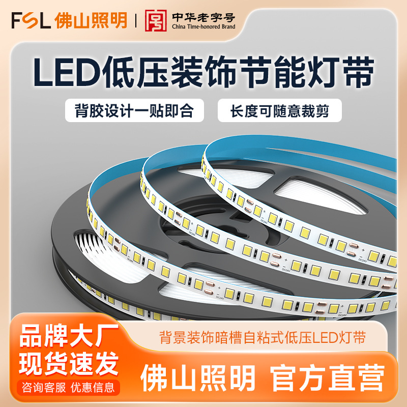 FSL Foshan pencahayaan LED tegangan rendah 24V super terang merekat sendiri gelap alur kabinet latar belakang dinding koridor lorong dekorasi bare light strip