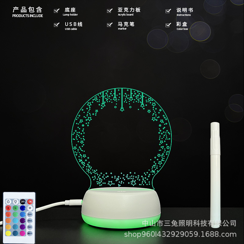 Papan pesan kantor 3D, lampu malam bawah bercahaya 3D papan pesan akrilik dapat dihapus