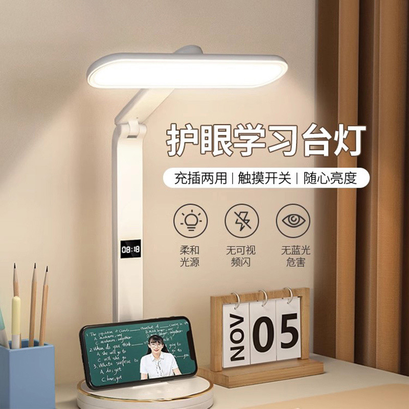 Lampu meja pelindung mata led, lampu meja Perlindungan Mata, pengisian daya led, lampu meja asrama, sentuhan belajar tiga warna peredupan membaca, lampu meja nirkabel sederhana untuk pelajar
