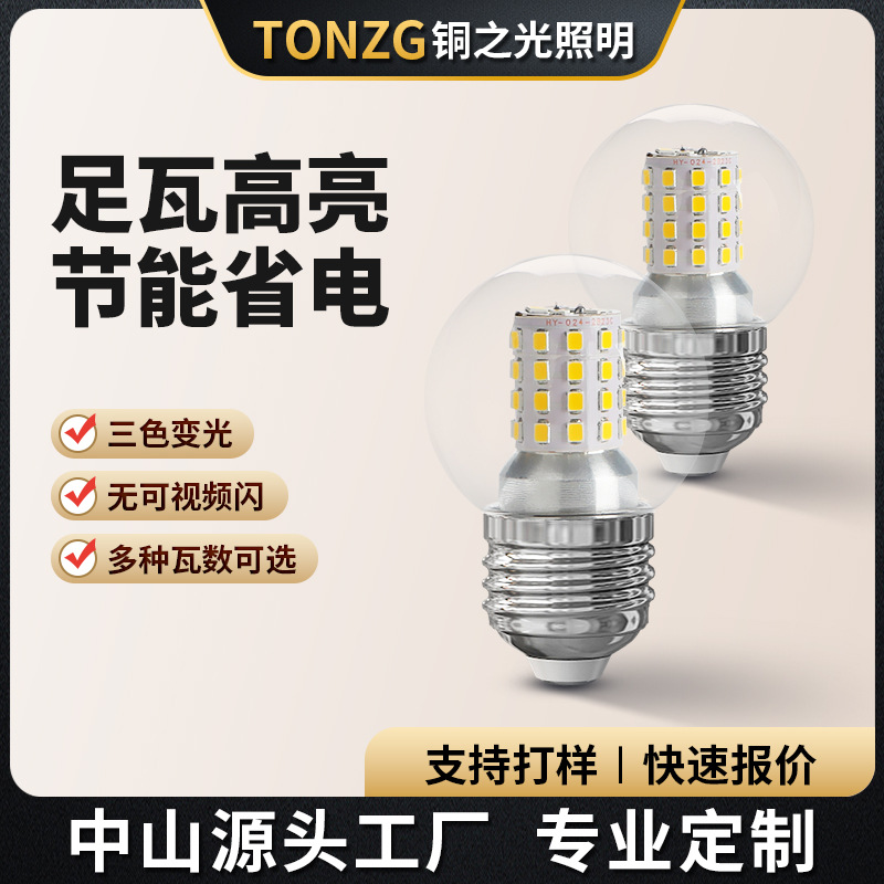 LEDE27 Bola Bulat Kecil Transparan Bola Lampu Super Terang Bola Lampu Tiga Warna Mengubah Sekrup Rumah Tangga 5 W Lampu Gantung Khusus 7W