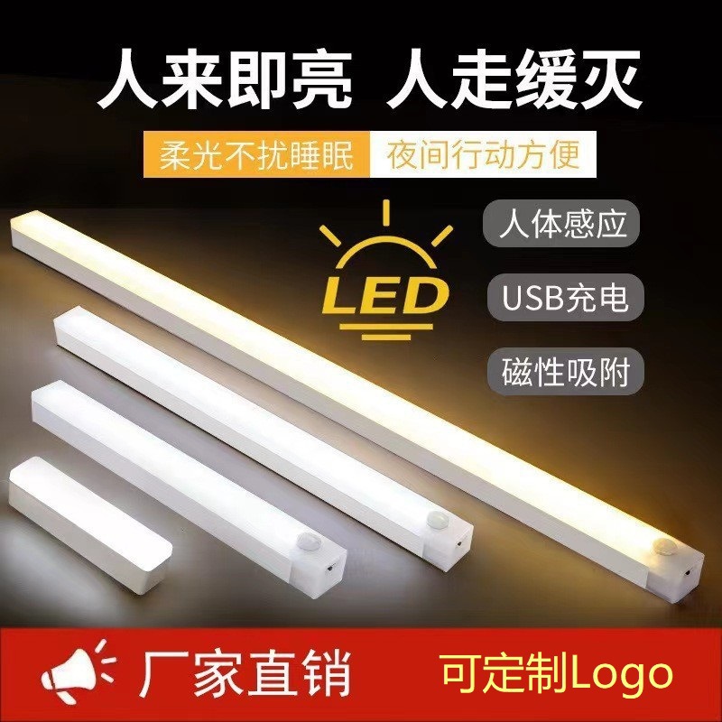 Lampu Sensor Tubuh Manusia LED Lampu Malam Kecil Panjang Perekat Sendiri Magnet Cerdas