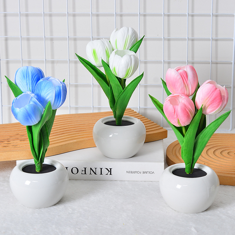 Lampu Malam LED Tulip Dalam Ruangan Karangan Bunga Imitasi Lampu Asuit Lampu Malam Hangat Kepala Tempat Tidur Model Pengisian Grosir