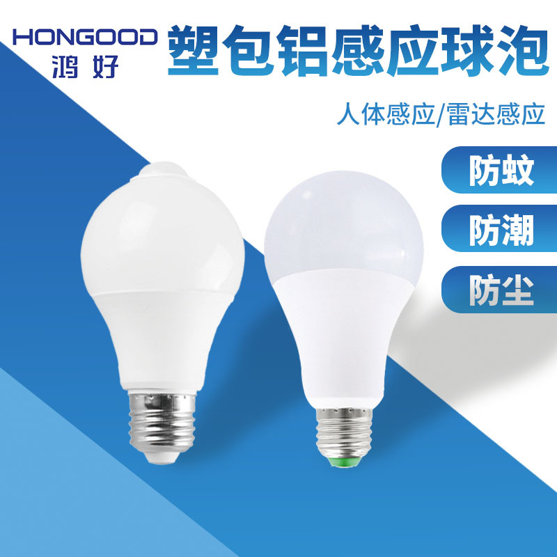 Lampu bohlam plastik aluminium A, bohlam induksi tubuh manusia inframerah, lampu bohlam kontrol suara induksi radar microwave, tekanan lebar, lampu tiga tahan