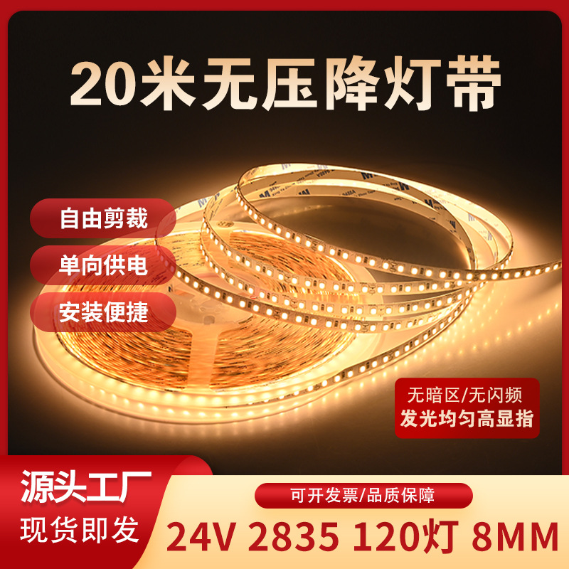 Strip lampu led tegangan rendah, strip lampu led tegangan rendah 24V20 m 120D tanpa tekanan drop bare board patch linear 2835 soft light strip batch