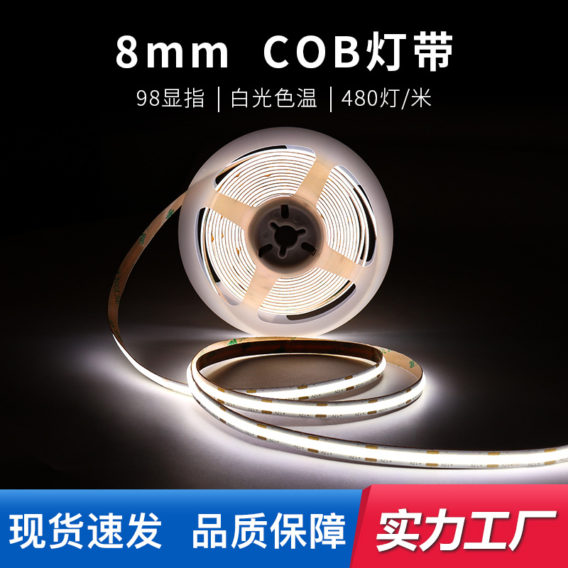 Strip lampu COB lebar 8mm, pita perekat led lembut pencahayaan dalam ruangan rumah jari tampilan tinggi non-strobo