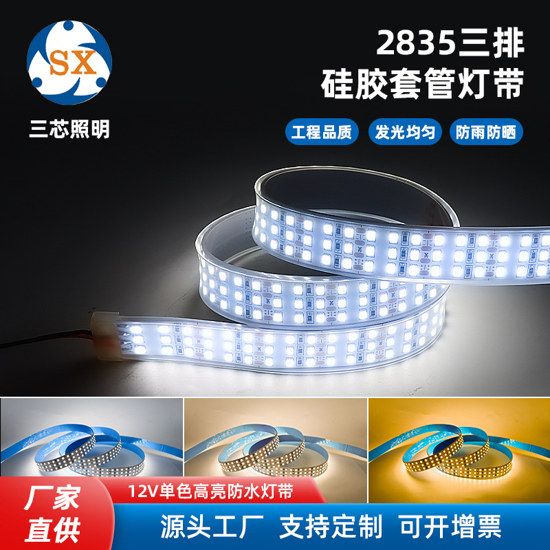 Pencahayaan komersial sorot teknik tiga baris monokrom lapisan elektro panel ganda 2835 tahan air luar ruangan lampu strip 360/meter