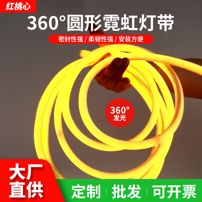 Lampu neon bulat 360 ° fleksibel strip 144 manik-manik, lampu dekorasi dalam dan luar ruangan papan nama tahan air cahaya tinggi