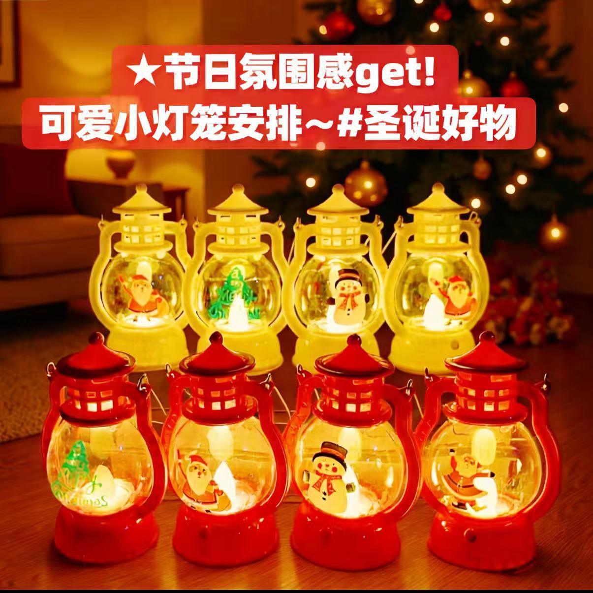 Lampu malam lentera kecil kreatif portabel, lintas batas cetak HD retro Natal khusus colokan