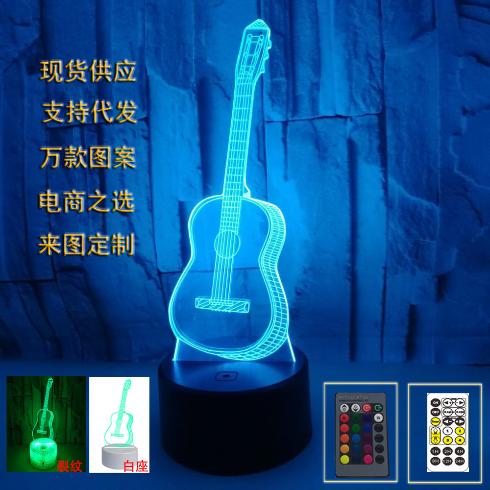Pasokan lintas batas gitar 3d lampu malam led tujuh warna lampu sentuh visual lampu suasana hadiah kreatif lampu meja kecil
