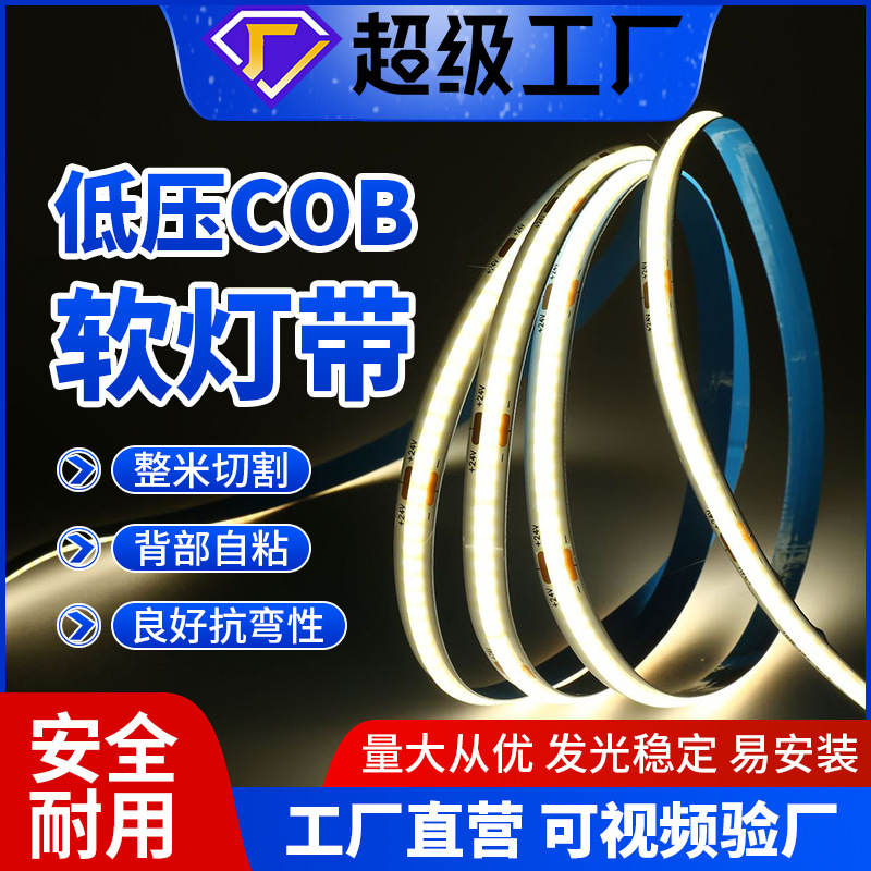 COB strip lampu led lembut 12 V24 V, strip lampu led voltase rendah 90 tampilan tinggi dekorasi rumah jari merekat sendiri suasana dekoratif lampu strip sorot