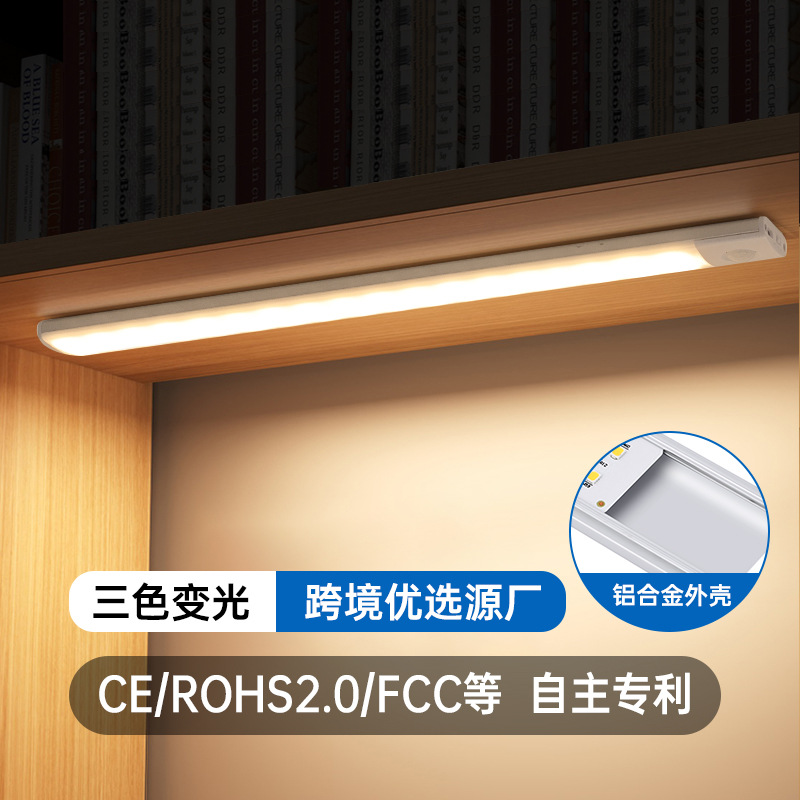 Lampu LED sangat tipis induksi tubuh manusia, lampu kabinet panjang magnetis nirkabel dengan lampu bar lemari lorong dapat diisi ulang