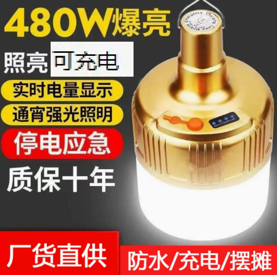 Bohlam pengisi daya LED luar ruangan, lampu pasar malam rumah tangga, lampu darurat, tahan air, lampu hemat energi, super terang
