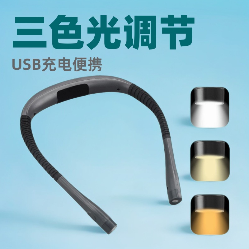 Lampu baca leher gantung LED Amazon lintas batas, lampu baca pelindung mata pengisian daya USB, lampu baca leher gantung lipat tiga warna