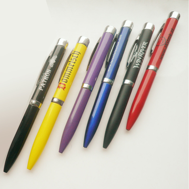 Grosir kreatif led kotak cahaya pena LOGO laser iklan pena warna plastik batang kapasitor berputar pulpen dalam stok