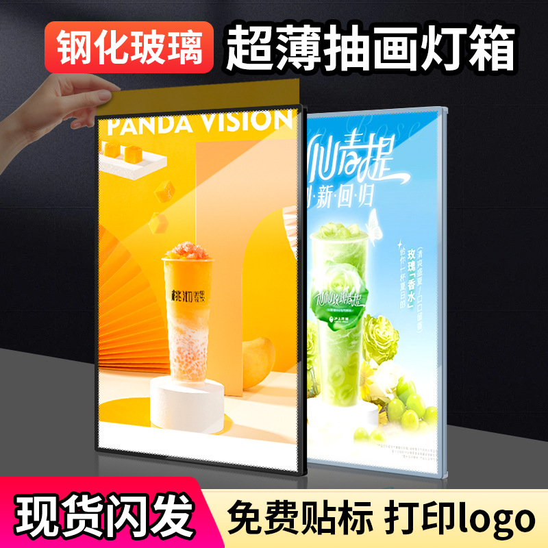 Kotak Lampu Gambar Kotak Kaca Tempered Panel Kaca Ultra Tipis LED Lampu Lampu Tembus HD Tembus Dinding Gantung Menu Ilustrasi Iklan