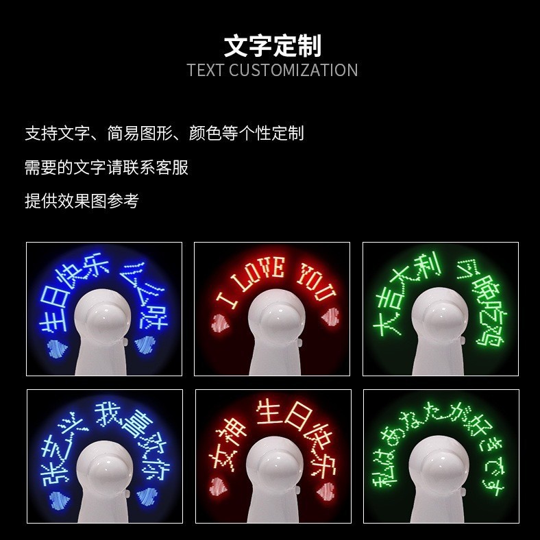 Kreatif Mini Genggam Kipas Berkilau Gemerlap DIY Iklan Hadiah Promosi Lampu LED Kipas Pemancar Kata Portabel