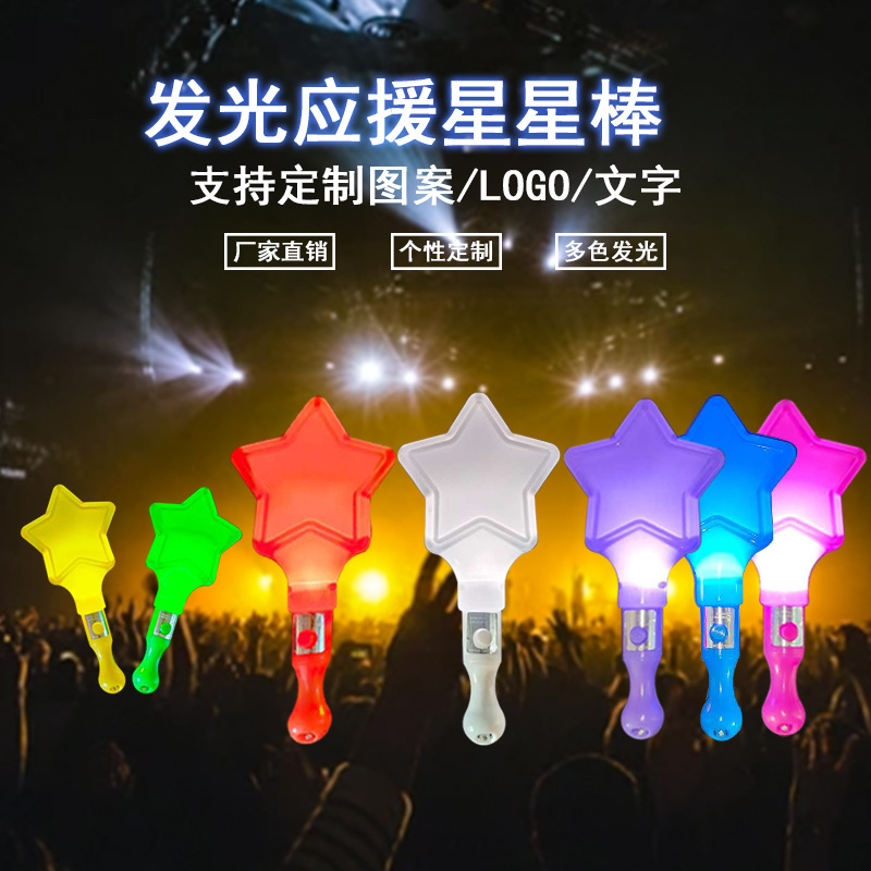 Tongkat Cahaya Grosir Tongkat Cahaya Bintang Lima Persegi Tongkat Flash Tongkat Cahaya Perak Ukuran Besar Mainan Bercahaya Dukungan Logo