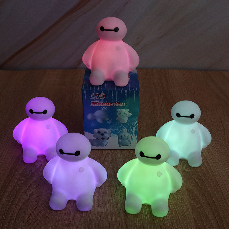 Lampu malam LED putih kartun berubah warna, lampu malam LED bercahaya logo samping tempat tidur mainan kreatif hadiah lampu