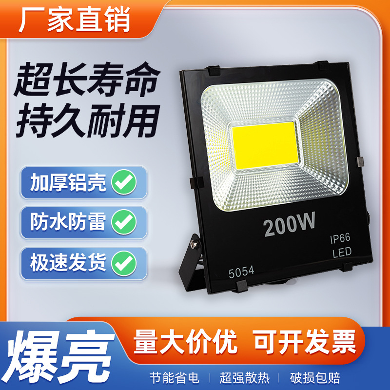 Lampu sorot LED luar ruangan 100w200w, lampu tahan air daya tinggi inspeksi situs pabrik iklan lampu banjir