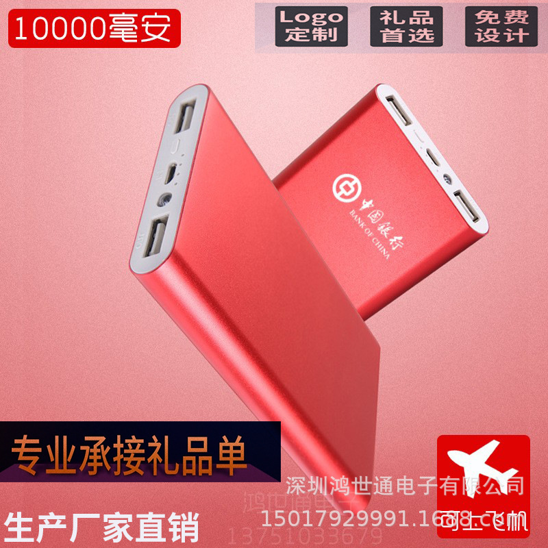 Power bank ringan logam cerdas 10000 mAh pengisian daya seluler cepat USB ganda untuk hadiah tulisan pola logo