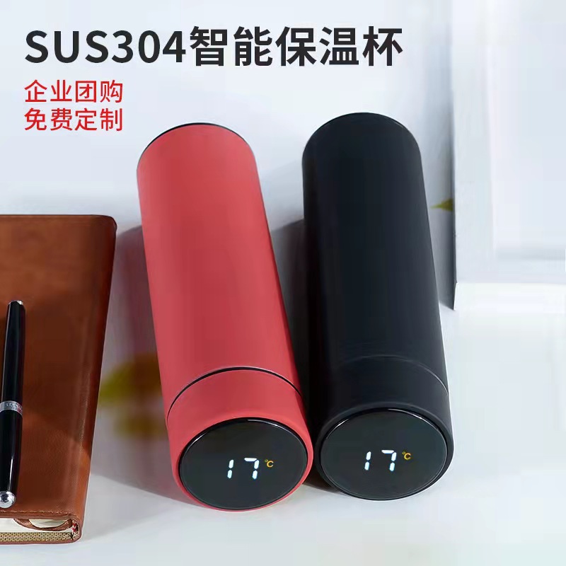 Grosir cangkir air bisnis pintar 304 cangkir vakum baja tahan karat LED gelas pengukur suhu pembuatan hadiah logo