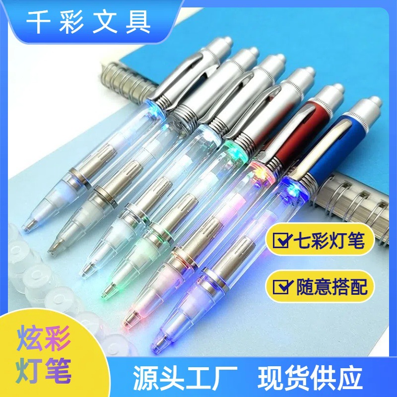 Sumber pabrik pena cahaya warna-warni kreatif multifungsi pena cahaya berubah warna pena iklan putar pena bercahaya LED bolpoin