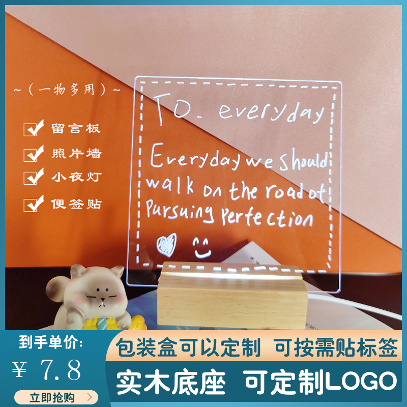 Lampu malam papan catatan memo bercahaya Desktop dasar lampu led plug-in DIY graffiti akrilik pesan