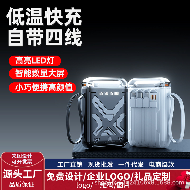 Power bank lampu LED berkabel baru 20000 mA pengisian daya Cepat catu daya ponsel kapasitas besar logo cetak grosir