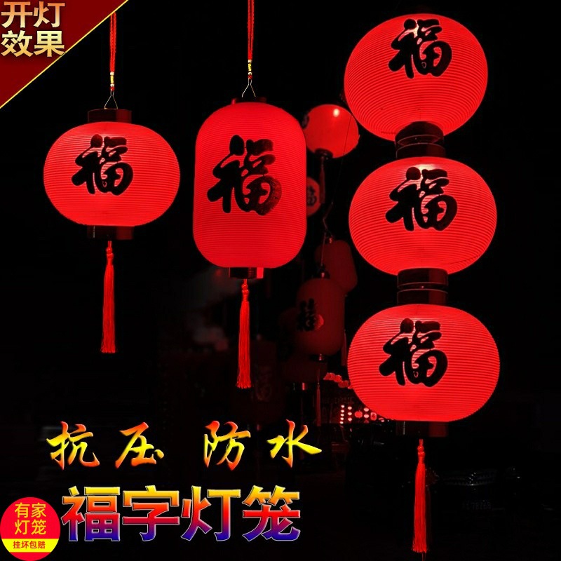 Lentera kecil bercahaya dalam ruangan, Festival Musim Semi Tahun Baru lentera PVC tahan air karakter fu plastik tahan tekanan lentera kecil luar ruangan iklan