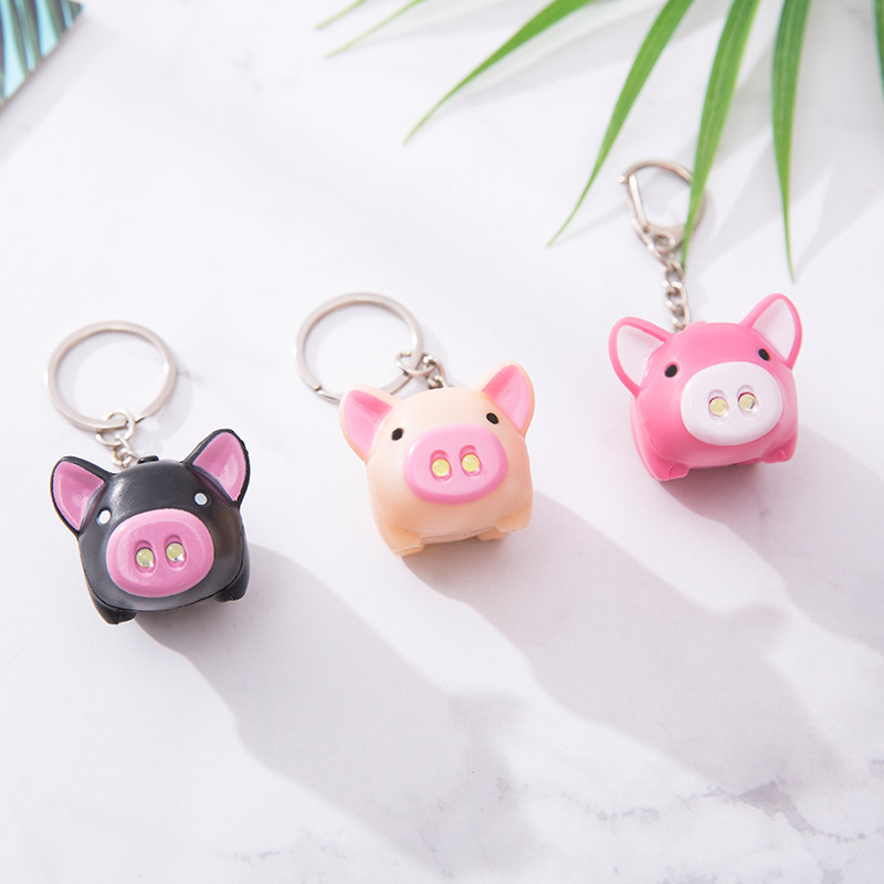 Gantungan Kunci kartun babi LED, Senter tas liontin pemancar cahaya suara